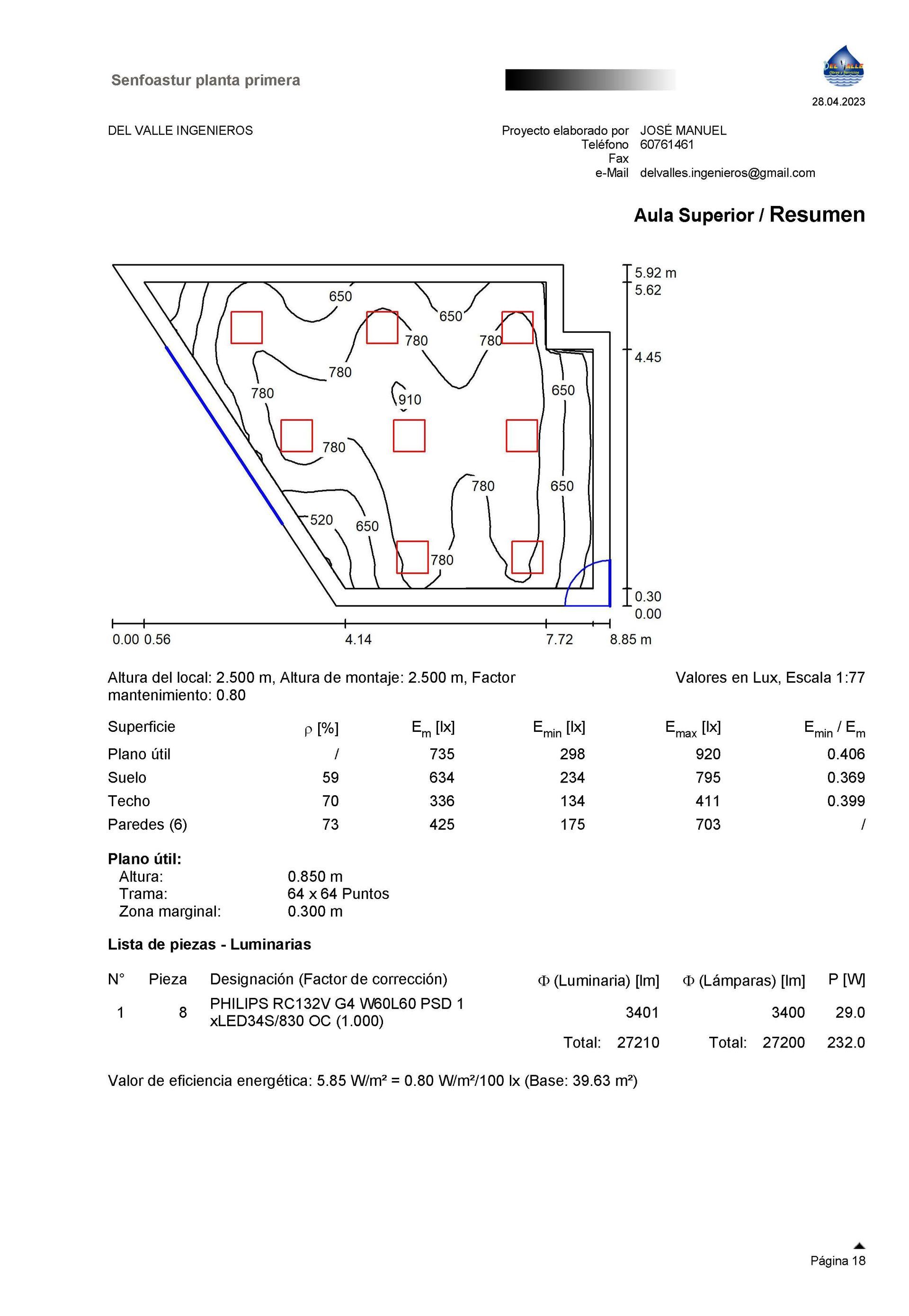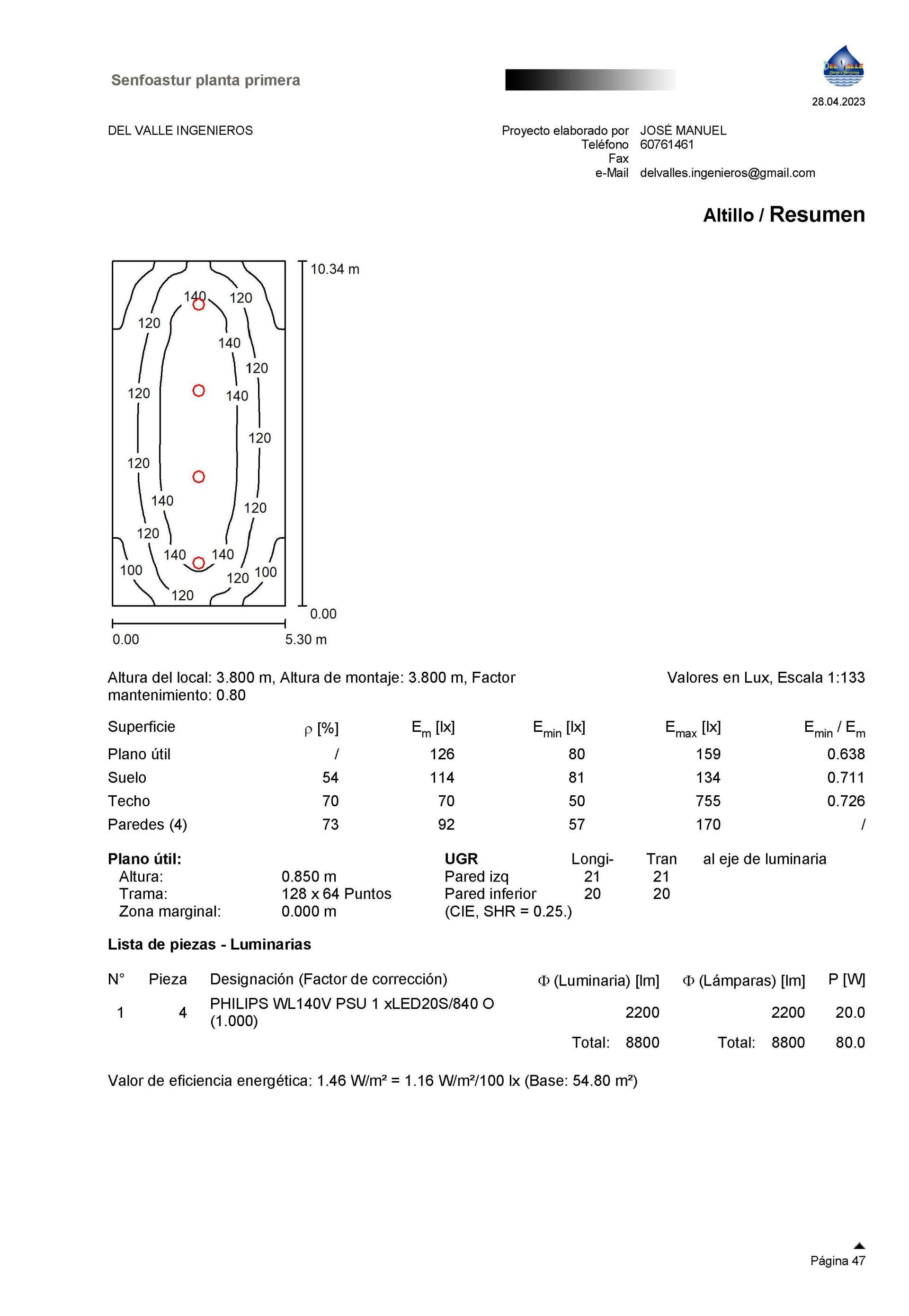 - Ejecución del Cálculo: Realizar el cálculo de la iluminación y obtener resultados sobre niveles de iluminancia, zonas oscuras y excesos de luz.